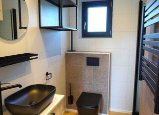 Naast deze slaapkamer is de badkamer, met doucheruimte en zwevend toilet aanwezig. Daarnaast bevinden zich twee aparte slaapkamers. Eén slaapkamer is voorzien van twee losse bedden, de andere slaapkamer is voor zien van een stapelbed.