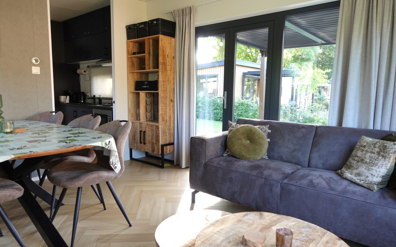 Type Berk is het nieuwste type chalet op het park. In 2023 is het park uitgebreid met 10 chalets van dit type. Een luxe, vrijstaande en comfortabele chalet voor 6 personen. Nummer 34 is gelegen aan de buitenrand van het park. Het chalet heeft hierdoor een beschutte ligging. Voor de exacte locatie kunt u de parkplattegrond bekijken. Deze treft u hier.